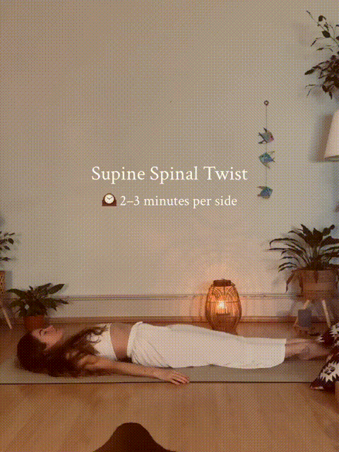 动作8,仰卧扭转(每侧2-3分钟)