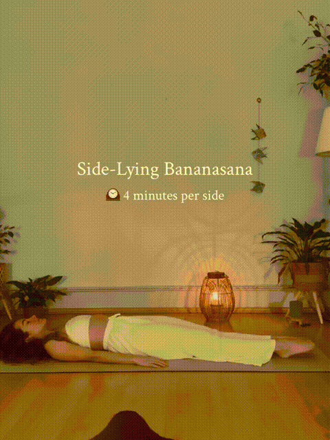 动作2,侧卧香蕉式(每侧4分钟)