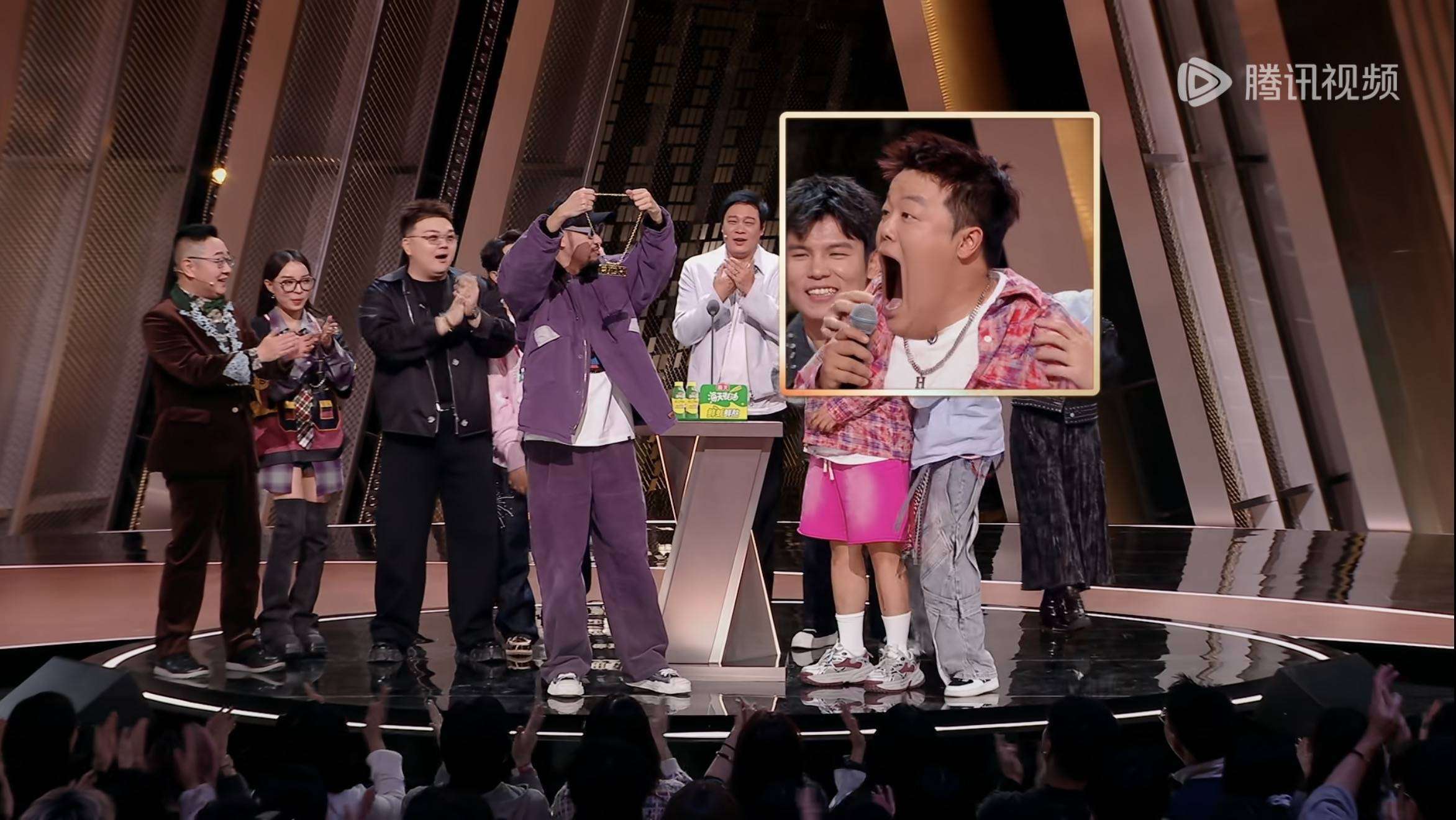 不过玩笑归玩笑,节目最后还是暖到人心。当哈哈曹唱着原创歌曲《Say Love》走向舞台中央,热狗突然摘下脖子上的金链子给他戴上,说:「不管是说唱还是脱口秀,能让人笑、让人感动的就是好东西。」艾福杰尼也主动和小奇碰拳:「下次合作写首diss曲,保证比你们的段子还炸!」两个圈层从互怼到互相欣赏,这波操作直接让#艾福杰尼你俩是love不是beef#冲上热搜,网友纷纷留言:「建议直接原地出道,团名就叫『说学逗唱组合』!」